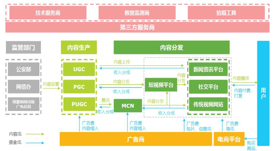 國內短視頻的發(fā)展已經構成生產傳播完整鏈條,既有專門做內容的機構,也有專門做平臺的機構,還有既做內容又做平臺的機構。